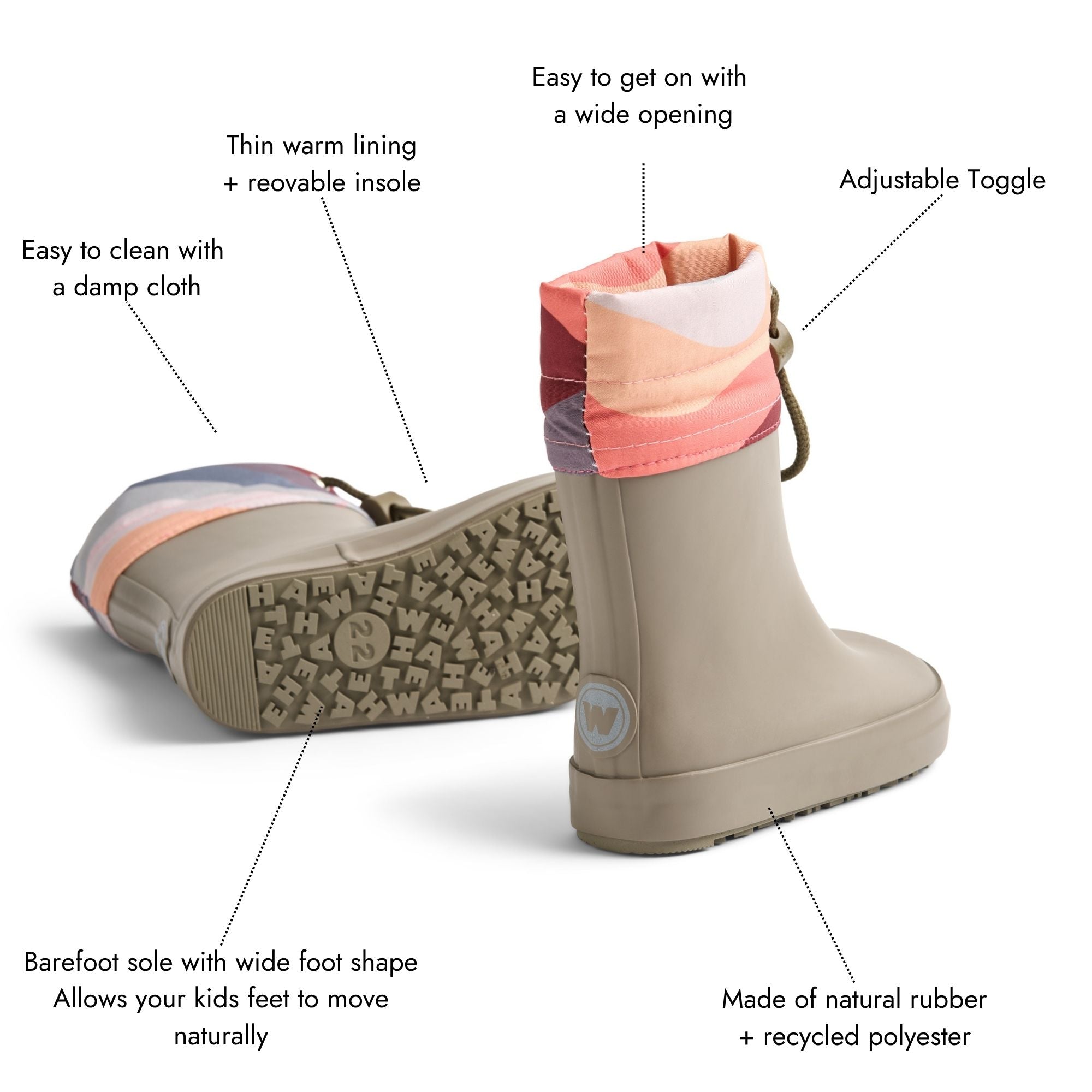 Barefoot Thermo Rubber Boots Zerro are a lightweight boot that provides uninhibited toe movement during play, making them super comfortable. The zero drop heel promotes a natural gait, almost like walking barefoot - every kids dream!