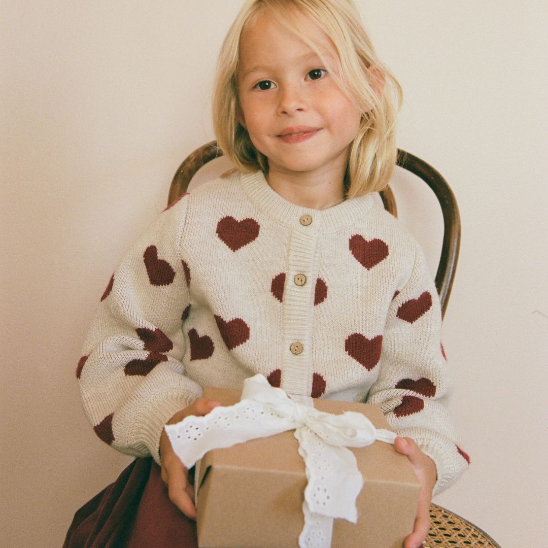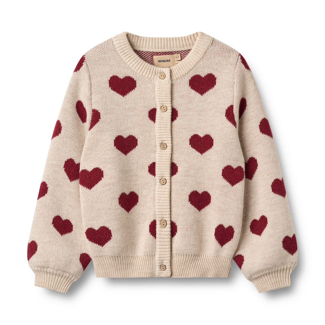 • Long-sleeved knit cardigan in soft merino wool with heart pattern