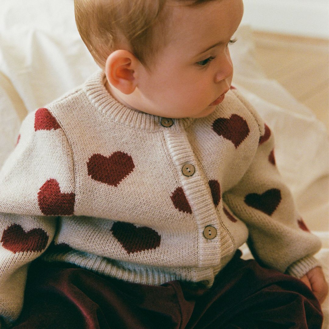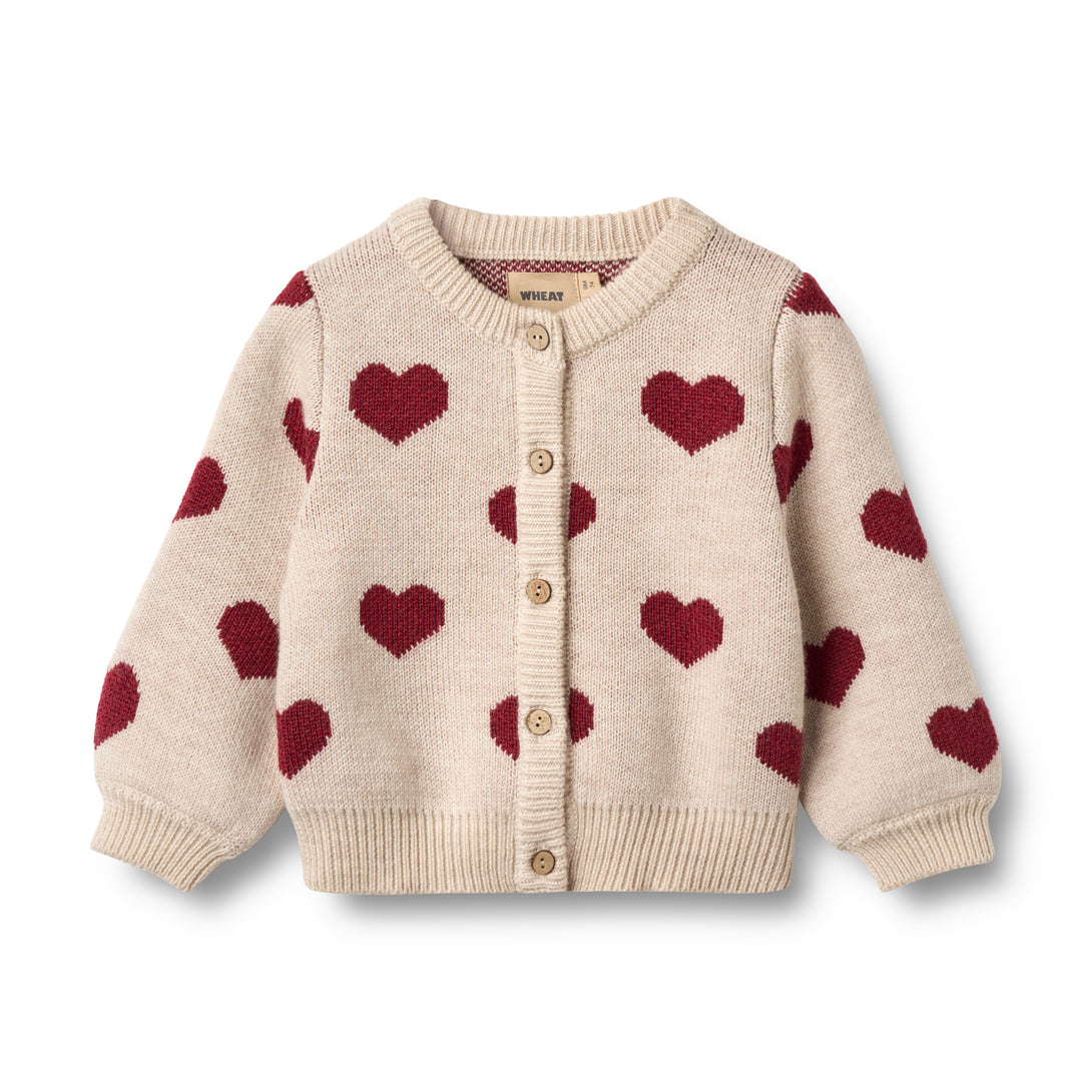 • Long-sleeved knit cardigan in soft merino wool with heart pattern